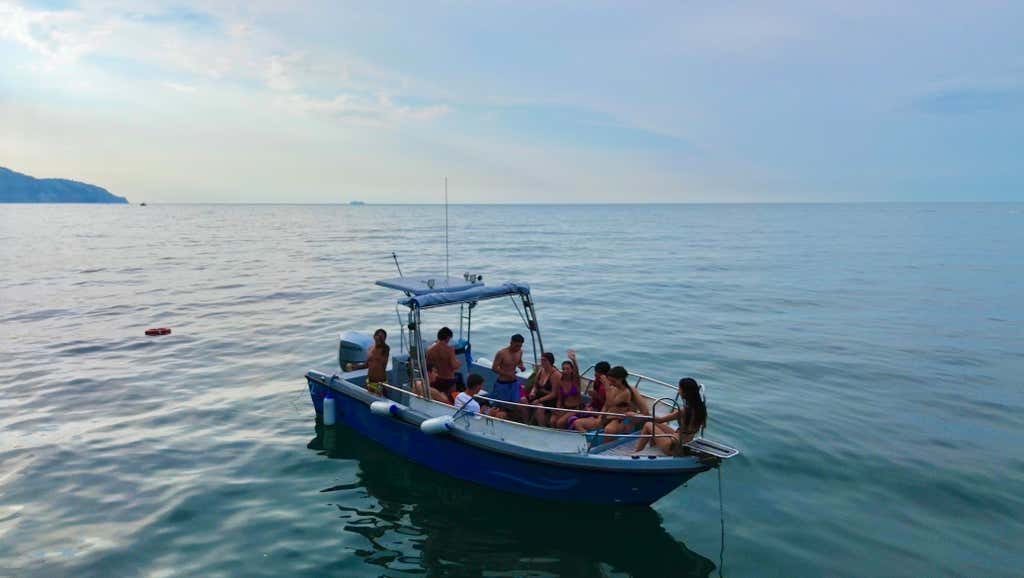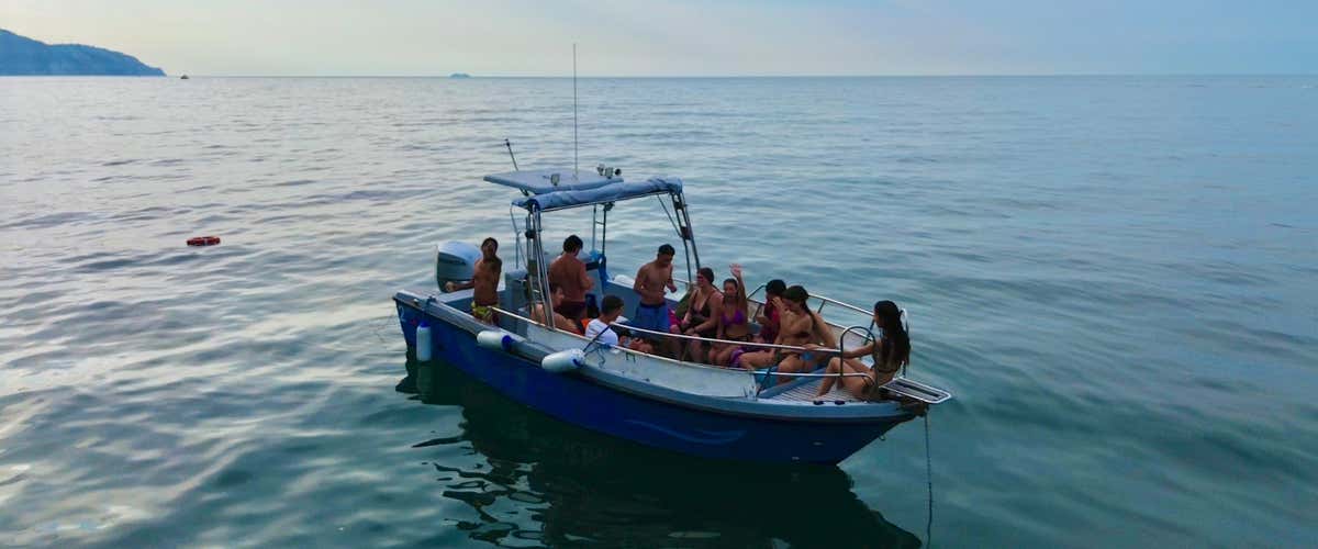 L'imbarcazione è un motoscafo Stella Maris 700 dotato di tendalino, doccetta, cuscineria e vano coperto per gli zaini. A bordo si rimane a piedi scalzi. I cani non sono ammessi a bordo.