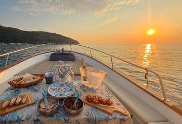 Salpa da Palinuro al calare del sole in direzione della Grotta Azzurra e poi della Baia della Ficocella e goditi emozionante bagno al tramonto: a bordo potrai gustare un aperitivo con prodotti cilentani e prosecco.