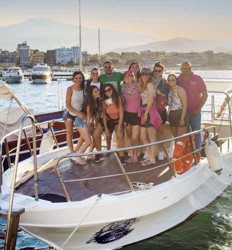Ci troveremo al porto di Giardini Naxos 15 minuti prima dell'orario indicato, dove ci attenderà l'equipaggio. Una volta saliti tutti a bordo, partiremo in direzione di Taormina.