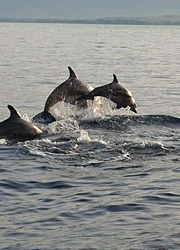 Grandi e piccini resteranno estasiati da questo incontro, navigando al loro fianco per osservarne i movimenti e i salti da vicino. Una volta scattate le foto di rito e ammirato il sole tramontare all’orizzonte, gusteremo un piccolo aperitivo a bordo a base di arancini, prosecco e bibite analcoliche.