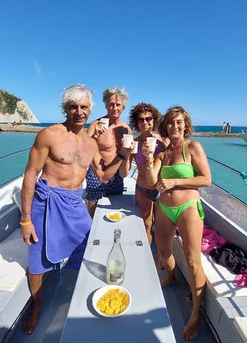 Proseguiremo poi alla volta di Portonovo, Mezzavalle e il Trave di Portonovo, dove ci fermeremo per una seconda sosta bagno su una spiaggia argillosa. Durante la sosta, verrà servito un aperitivo (incluso) che comprenderà un calice di bollicine per brindare in compagnia.