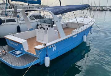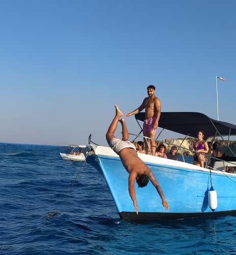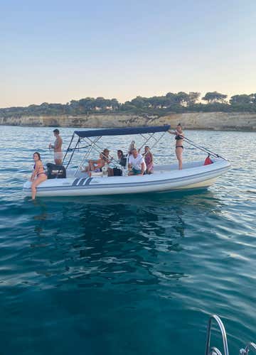 In base alla disponibilità e al numero di partecipanti, l'imbarcazione utilizzata potrà essere un gozzo di 9 metri con prendisole, tendalino, doccetta d'acqua dolce, scaletta di risalita e plancetta; oppure un gommone di 8 metri con prendisole, tendalino e scaletta di risalita.