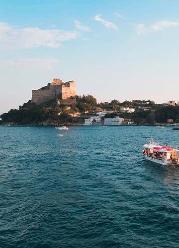 La nostra navigazione partirà alla scoperta delle meraviglie di Baia. Durante il tragitto, avremo modo di ammirare lo spettacolare Castello Aragonese, Villa Sole e Luna e Punta Epitaffio.
