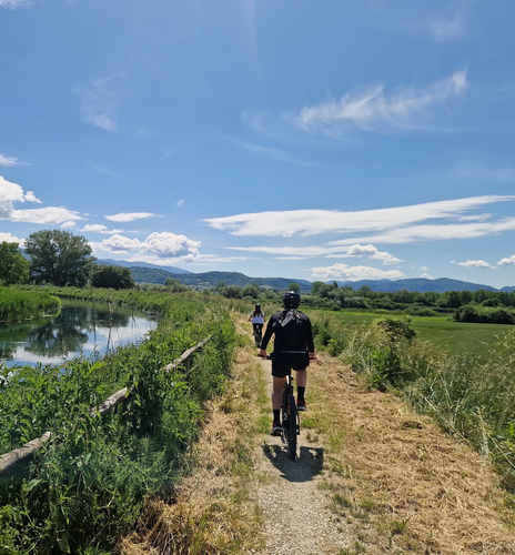 Saltati in sella, non ci resterà che far fluire tutta l'energia di cui siamo in possesso nelle gambe e iniziare a pedalare. Seguiremo un tracciato di circa 25 km (niente paura, la guida lo adatterà in base alle necessità del gruppo!) con un dislivello di 350 m.