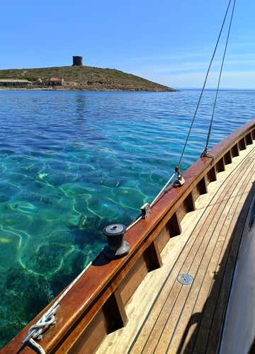 L'appuntamento è alle ore 09:00 presso il punto di ritrovo a Stintino (SS), dove lo skipper ci accoglierà a bordo di questo elegante gozzo a vela.