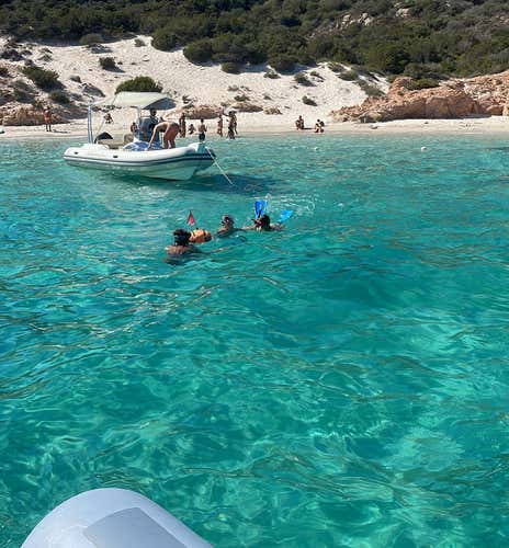 Unisciti a noi per un'escursione di mezza giornata in gommone a Spargi. Le sue spiagge incontaminate e le acque turchesi nascondono un mondo sottomarino ricco di vita: pesci colorati, stelle marine, misteriosi anemoni e molto altro ancora.