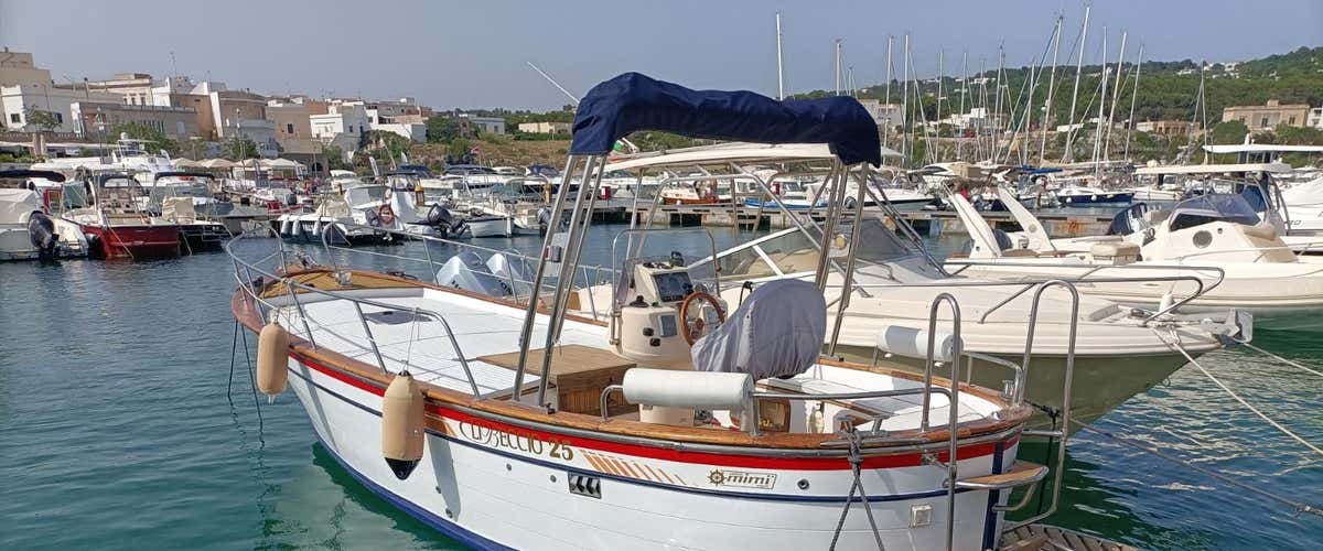 L'imbarcazione è un gozzo a motore di 7,5 metri dotato di tendalino e doccetta; a bordo sarà necessario rimanere scalzi.