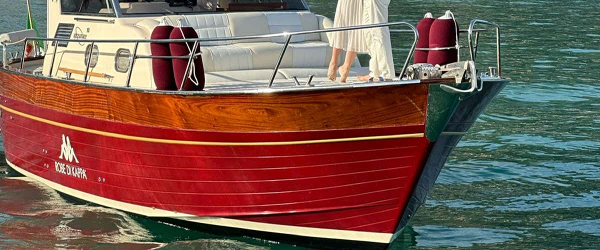 Sarai a bordo del gozzo Apreamare, con una lunghezza di 10.50 m e larghezza di 3.45 m motorizzata con due motori Volvopenta. A bordo sono presenti tutti i comfort tra cui cabina spogliatoio, tendalino, prendisole di prua e WC.