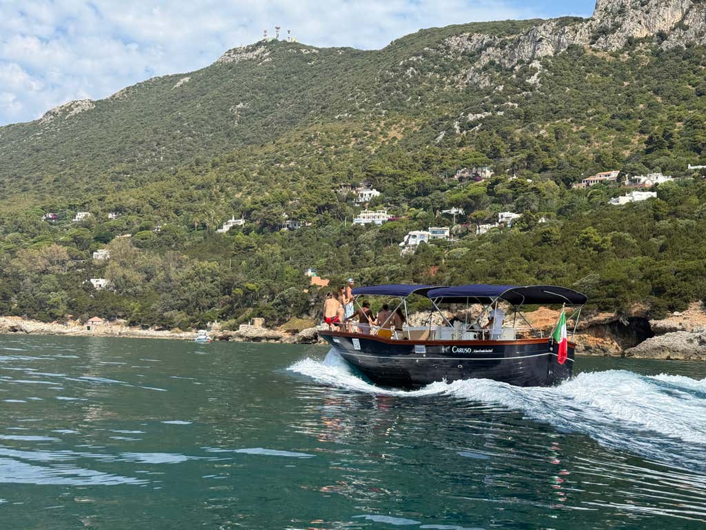 L'imbarcazione è il gozzo Don Raffaè o Caruso (a discrezione dell'organizzatore), dotato di tendalino, doccetta, scaletta di risalita e stereo e di lunghezza compresa tra 8 e 10 metri. A bordo sono presenti opuscoli illustrativi in lingua inglese che descrivono le principali attrazioni visibili durante l'escursione.