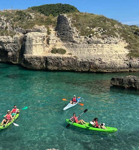 Lasciati incantare da un'escursione in kayak lungo uno dei tratti più suggestivi della costa adriatica salentina. Partendo da Roca Vecchia, esplorerai con la guida le meraviglie nascoste tra le rocce: piccole calette, grotte un tempo rifugio dei pirati e persino un'area archeologica a picco sul mare.