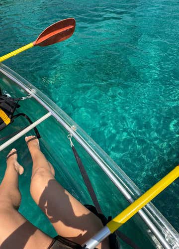 Immagina di pagaiare sul mare di Sardegna, quando all'improvviso sotto di te passa un banco di pesci colorati. A bordo di un kayak trasparente può capitare anche questo!
