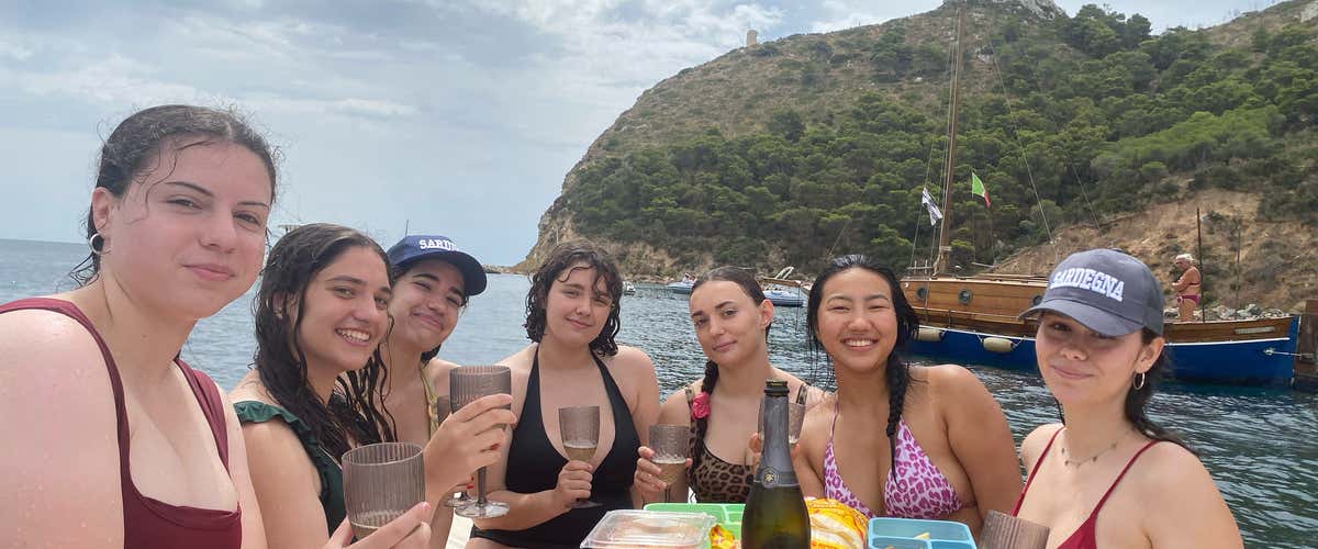 Per concludere in bellezza l'esperienza, il nostro skipper ci servirà un aperitivo a bordo a base di un calice di vino bianco o prosecco accompagnato da tipiche sfiziosità sarde come polpettine, olive e salame del territorio.