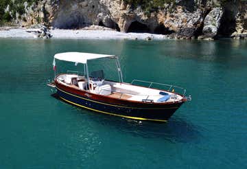 La barca utilizzata è un'Apreamare, imbarcazione a motore in legno realizzata a Sorrento. Le dimensioni pari a 8x3 metri consentono al capitano di avvicinarsi facilmente alla costa e di accedere alle grotte. La barca è dotata di tendalino, prendisole a prua, cuscineria, doccetta di acqua dolce, radio e bagno. A bordo è presente anche una ghiacciaia, che viene messa a disposizione dei partecipanti nel caso in cui desiderino portare con sé bibite da tenere al fresco.
