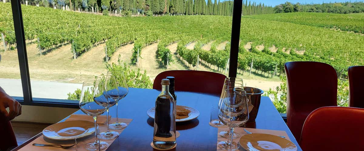 - Gusta un aperitivo al tramonto con vista su filari di cipressi e biancane