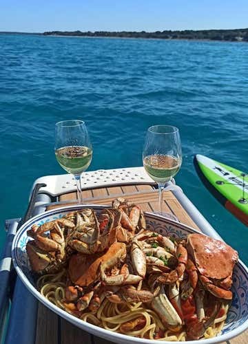 L'equipaggio ti regalerà un'esperienza indimenticabile che potrai concludere al meglio con un fresco aperitivo con frisa salentina, frutta fresca e buon vino di fronte al paesaggio incontaminato dell'Isola dei Conigli.