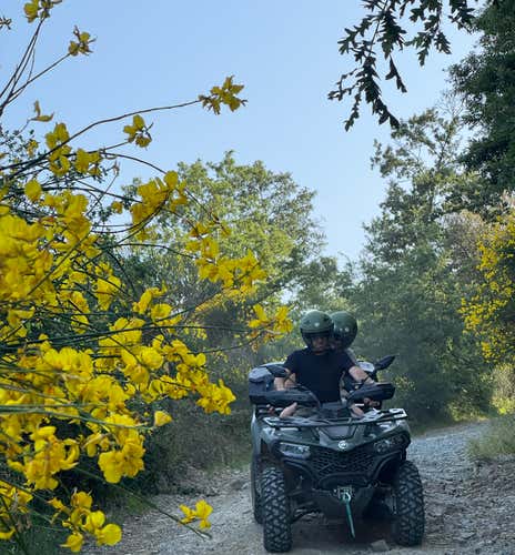 Ed eccoci pronti per la nostra escursione in quad: ci avventureremo sulle scenografiche colline toscane tra bosco, vigneti e uliveti; sfrecceremo su sterrato, alternando scorci panoramici a scariche di adrenalina. Lungo il percorso avvisteremo anche una caratteristica opera d'arte contemporanea, davanti alla quale potremo scattare una foto ricordo.