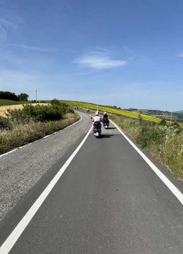 L'appuntamento è 30 minuti prima delle 9:30 a Barbara (AN), dove la guida ci darà il benvenuto e ci consegnerà le Piaggio Vespa Primavera 125, pronte per il nostro tour giornaliero. Dopo un breve briefing, saremo pronti a partire!