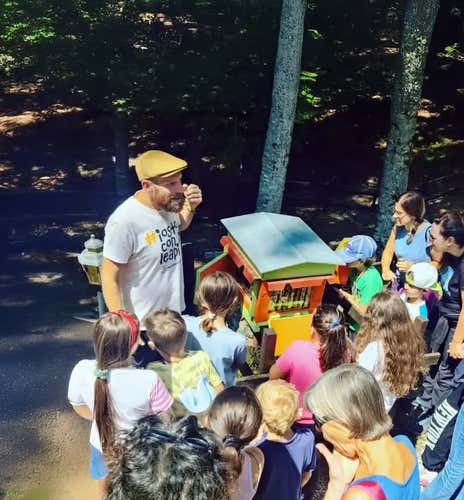 Infine, scopriremo cos'è un abbeveratoio didattico e perché possiamo accarezzare le api che lo circondano. Nei mesi di maggio e giugno potremo persino provare ad accarezzare le api in prima persona!