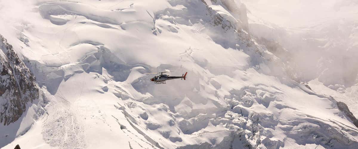 Sali a bordo di un elicottero Airbus Helicopter AS350B3 guidato da un pilota esperto, e sorvola i cieli che sovrastano la Capanna Margherita, il rifugio più alto d'Europa, a 4.554 metri sul livello del mare.