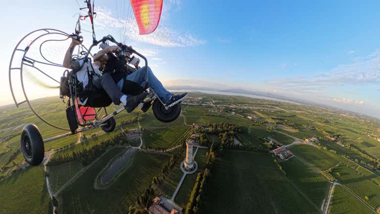 Sai cosa hanno in comune Batman e tua zia Maria? Nessuno dei due ha mai visto il Lago di Garda dall'alto di un paramotore. Ma tu puoi.