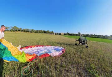 Prima di partire c’è un breve briefing di 10-15 minuti, giusto per spiegarti come funziona il paramotore. Se ti stai chiedendo cos’è, pensa a un parapendio con un motore dietro: leggero, sicuro e perfetto per decollare in pianura senza bisogno di lanciarsi da una montagna o collina.