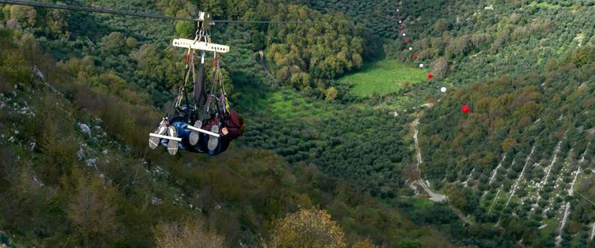 Percorrerai gli oltre 2 km del cavo d'acciaio che collega due alture a strapiombo sulla verdeggiante natura dei Monti Lepini, in provincia di Latina, e il brivido della velocità e dell'altezza ti farà urlare di gioia!