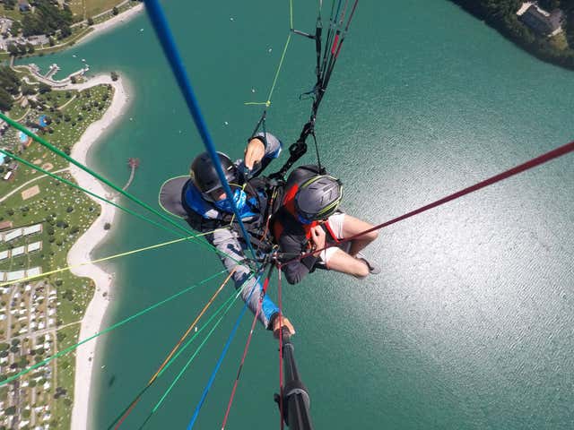 Ho regalato questa avventura a mio marito Maurizio.nQuando è sceso mi ha detto:n"Esperienza fantastica, con panorama mozzafiato tra montagne e lago!nAndrea, la guida, è stato molto simpatico, attento, scrupoloso e estremamente paziente nel rispondere a tutte le mie domande.nTutti dovrebbero provare l'esperienza del volo!!!"