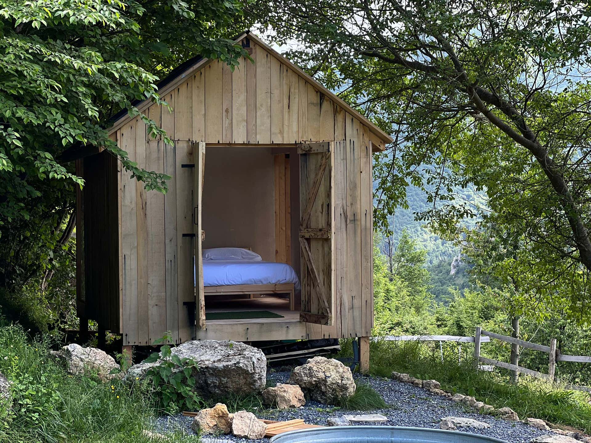 Scopri "una casetta piccola così" a Garessio, tra i boschi di Cuneo! Soggiorna per una notte nella casetta Humus con vista sulle Alpi Liguri, ascolta i suoni del bosco e ritrova un ritmo di lenta e profonda connessione con la natura.