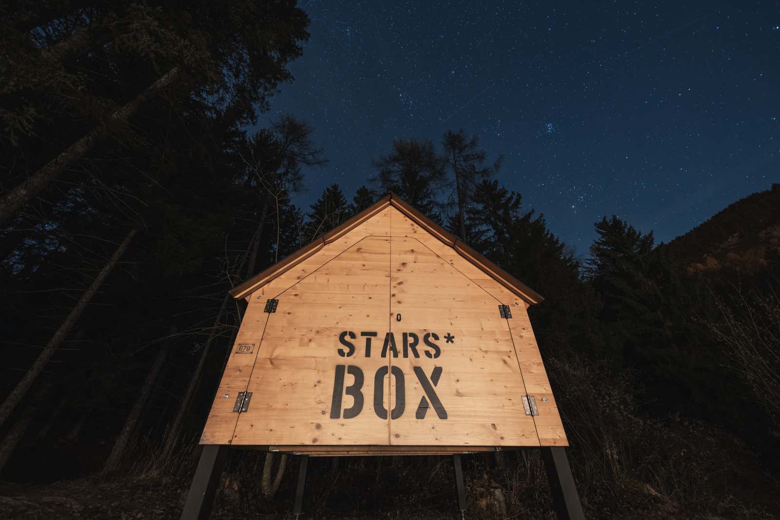 Hai mai dormito sotto una trapunta di stelle? Vivi questo sogno in Val di Gresta con una notte in StarsBOX, una casetta in legno con il tetto apribile da cui guardare il cielo stellato. L'alloggio si trova in una radura tra i boschi del Trentino-Alto Adige, punto di partenza per escursioni in montagna. Il soggiorno include un aperitivo di benvenuto e una colazione fatta in casa.
