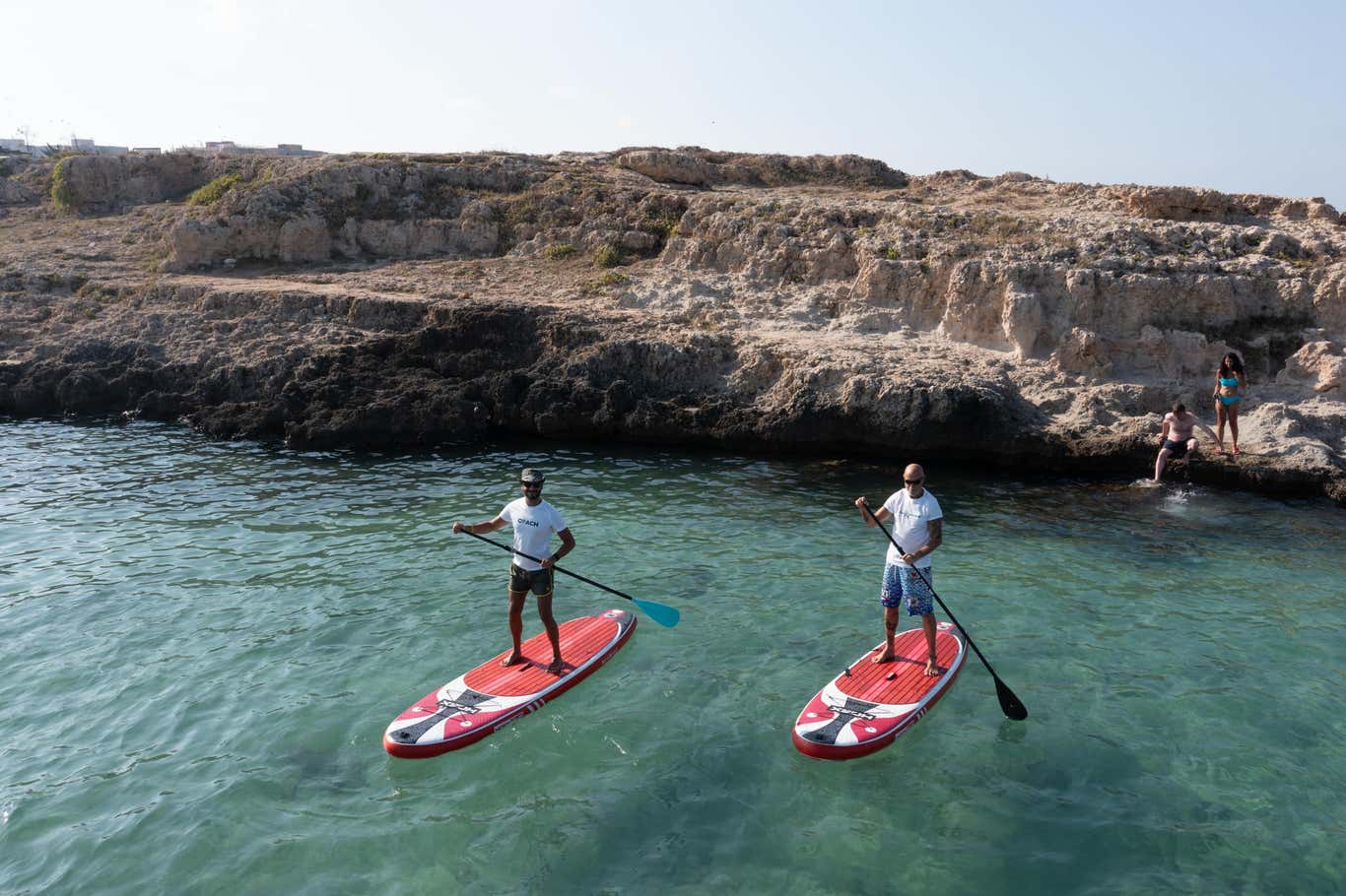 Esplora la costa di Monopoli in SUP con un tour di 2 ore tra grotte, spiagge nascoste e simboli leggendari. Una guida esperta ti accompagnerà sulle tracce della mitica colonia di Atlantide descritta da Platone.