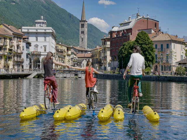 Pedala sulle acque del Lago d'Orta con una divertente shuttle-bike per 45 minuti! Esplora la riva di Omegna a bordo della tua bici acquatica, ammira il paesaggio montano e goditi una colazione o un aperitivo galleggiante.